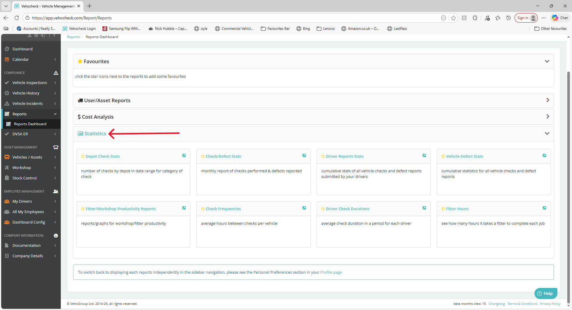 - Driver Report Stats: An overview of checks performed by drivers against defects recorded.