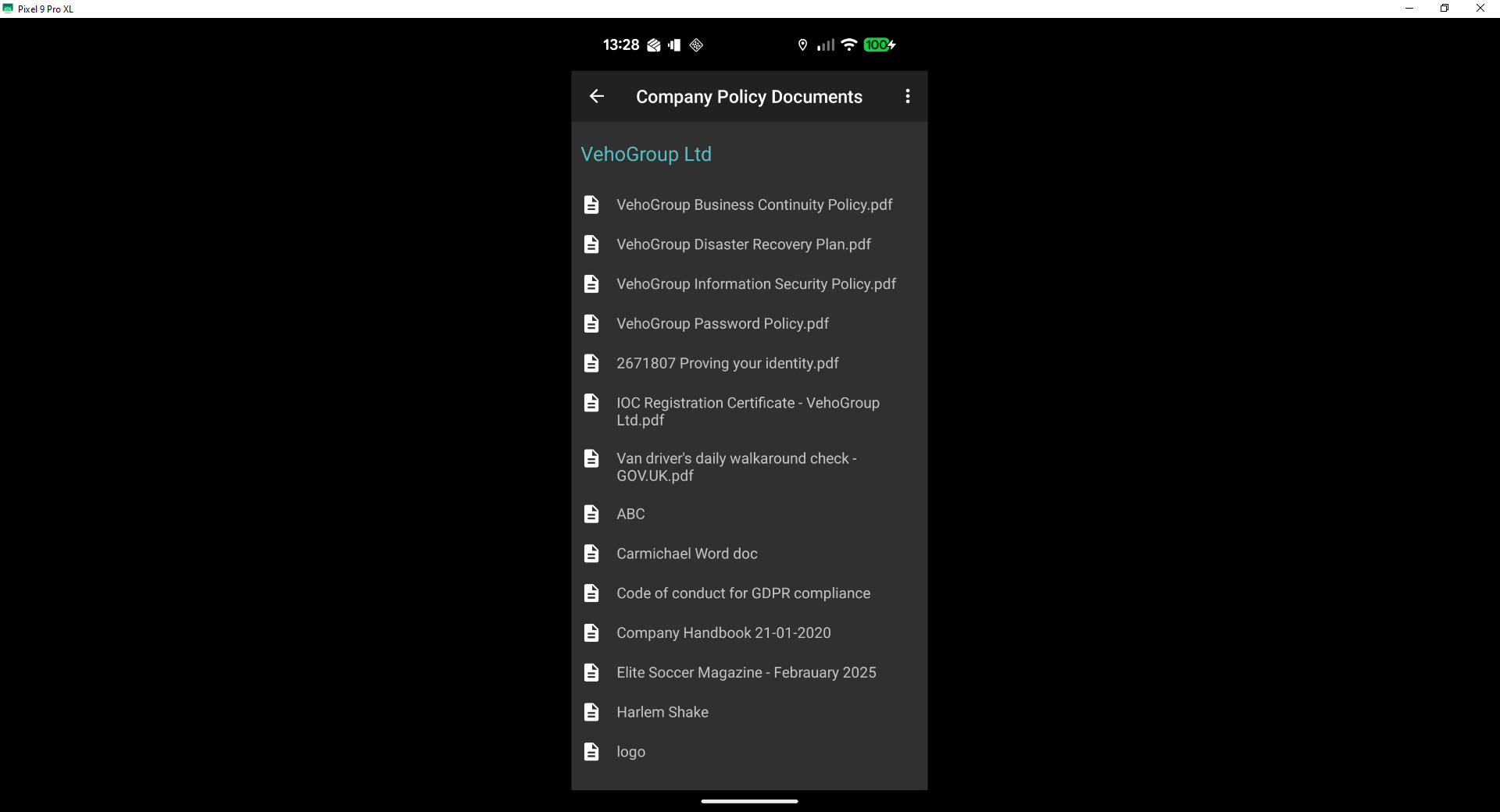 Drivers App > Menu > Company Policy Documents