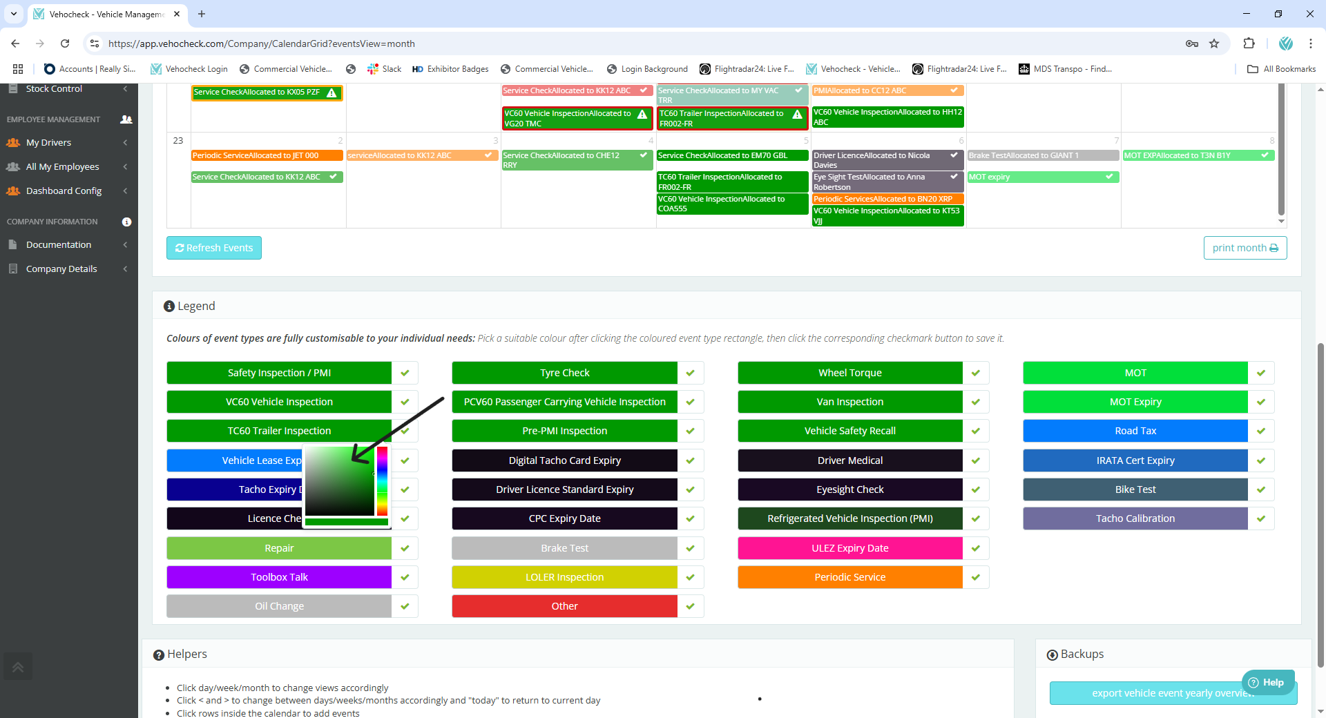 The Vehocheck Calendar comes pre populated with all event types but can be edited to suit your needs.