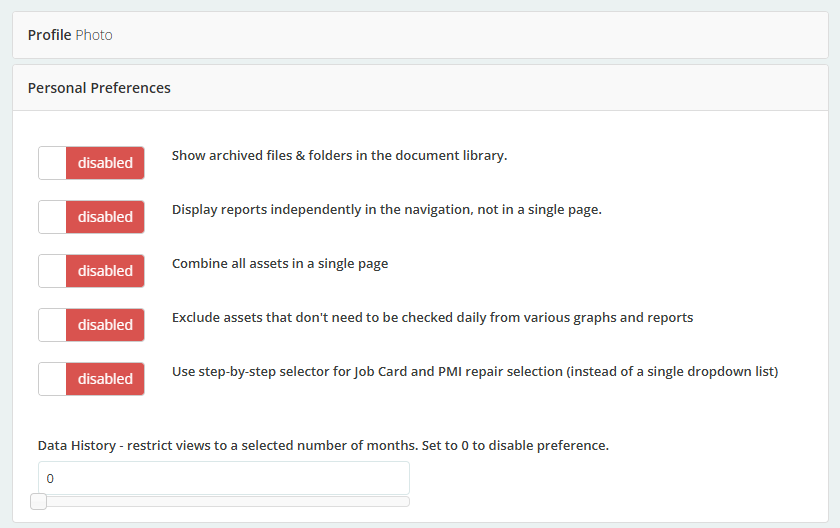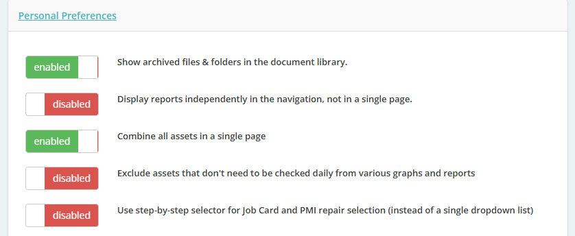 Personal Preferences are settings that let you tailor the Vehicle Compliance Dashboard to match how you work
