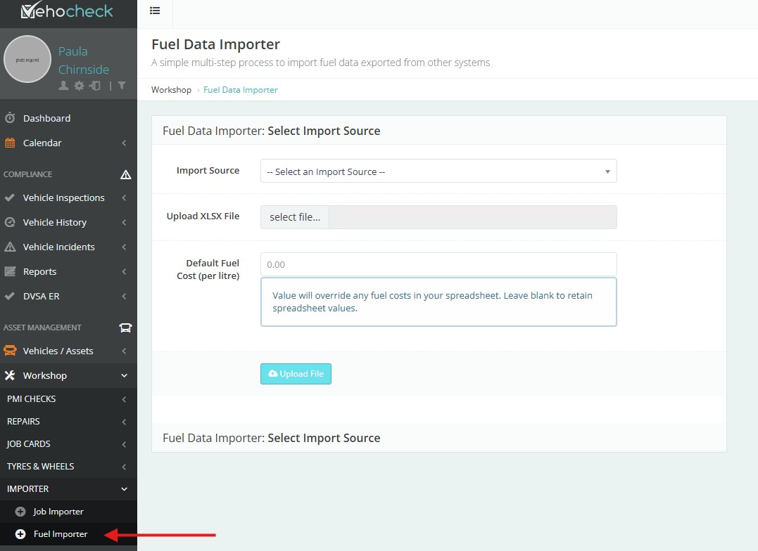 If you are using a number of Fuel Cards, you can choose which one you are uploading in the Import Source dropdown.