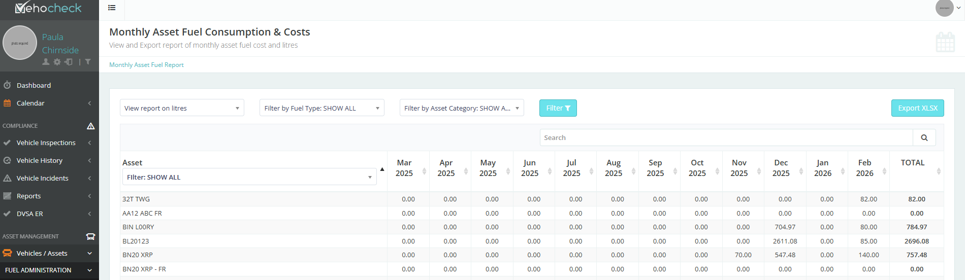 Keeping track of your Company's Fuel usage is essential. Drivers can easily upload fuel through their mobile app, or you can import your weekly/monthly invoices directly from your fuel card provider. Once the information has been uploaded into Vehocheck you can pull a Report to show you Monthly Asset Fuel Data & Monthly Asset Fuel Costs