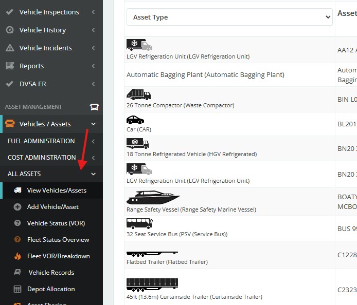 On your Dashboard go to Vehicle / Assets > ALL ASSETS